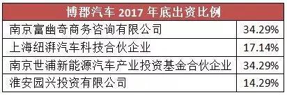 據(jù)南京日?qǐng)?bào)報(bào)道,2016年12月22日,由中科招商投資管理集團(tuán)股份有限公司與浦口經(jīng)濟(jì)開(kāi)發(fā)區(qū)共同發(fā)起、總規(guī)模達(dá)50億元人民幣的南京浦口新能源汽車(chē)產(chǎn)業(yè)基金揭牌。中科招商是博郡汽車(chē)最早投資者,和南京浦口對(duì)接之后,雙方一起孵化博郡。該基金即投資博郡汽車(chē)。從2017年底的工商信息看,南京世浦新能源汽車(chē)產(chǎn)業(yè)投資基金合伙企業(yè)占有34.29%的股份。