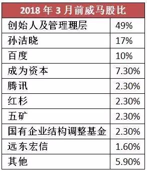 威馬的融資說(shuō)明書(shū)顯示,持股較多的股東分別是創(chuàng)始團(tuán)隊(duì)、個(gè)人投資者孫曉潔、百度、成為資本、騰訊、紅杉、五礦、國(guó)有企業(yè)結(jié)構(gòu)調(diào)整基金和遠(yuǎn)東宏信。