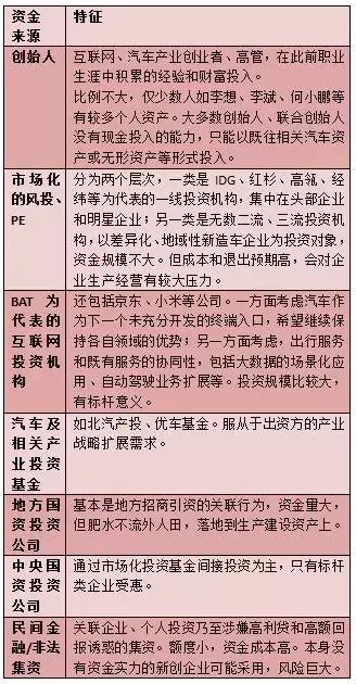 新造車(chē)勢(shì)力的資金來(lái)源和特征如下表: