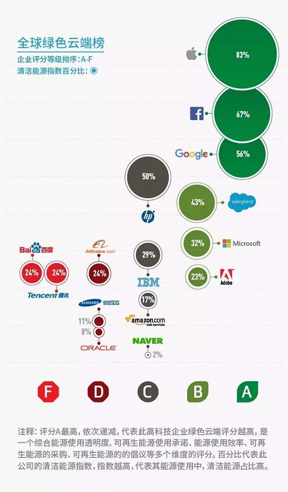15家互聯(lián)網(wǎng)巨頭可再生能源使用情況 谷歌連續(xù)三年得A阿里剛及格