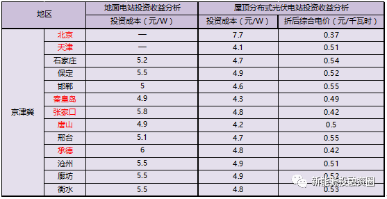 【2018新電價】京津冀光伏項目投資收益率分析