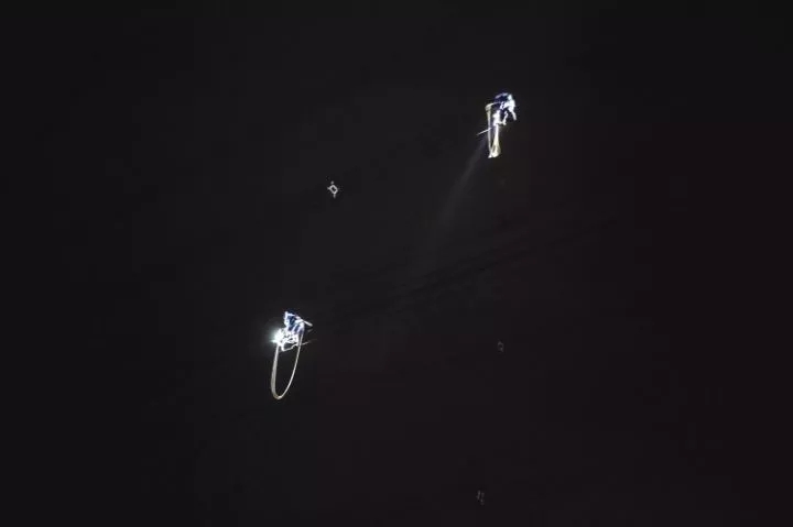 ▲強(qiáng)臺(tái)風(fēng)過(guò)后的珠海,一處不知名的荒郊野外,幾名南網(wǎng)員工正在220千伏國(guó)珠線上進(jìn)行高空搶險(xiǎn),經(jīng)過(guò)幾個(gè)小時(shí)的連續(xù)奮戰(zhàn),直至8月24日凌晨5時(shí)30分完成修復(fù)作業(yè)。賴增鵬 許昌永 周卓英 攝