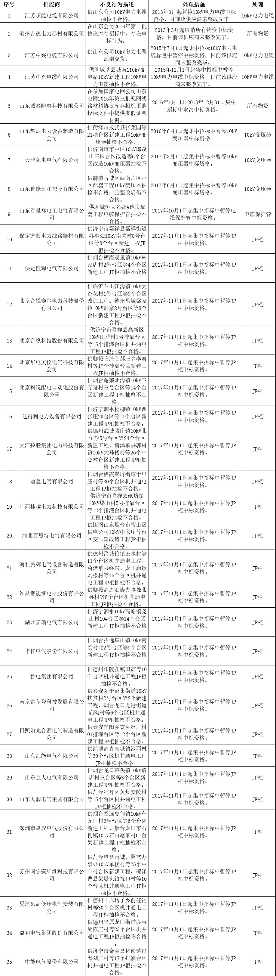 十九、國網(wǎng)山東省電力公司關(guān)于2018年第六批供應(yīng)商不良行為處理情況的公示(2018年12月)