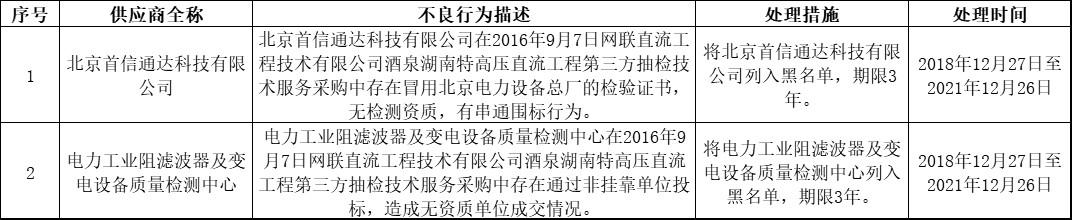 二、國網(wǎng)新源控股有限公司關(guān)于供應(yīng)商不良行為處理的通報(bào)(2018年11月)