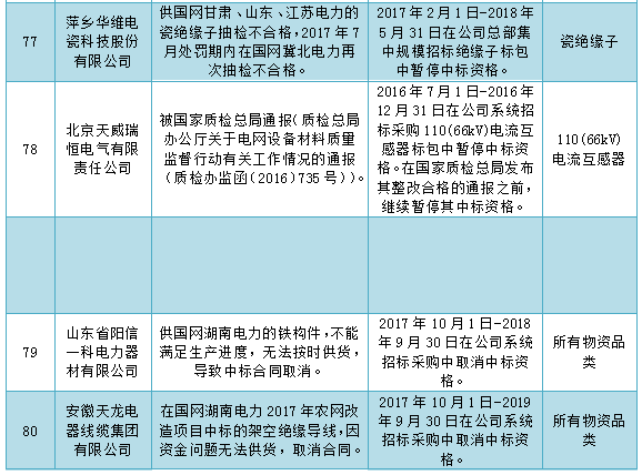 國家電網(wǎng)公司通報2017年9月供應(yīng)商不良行為處理情況