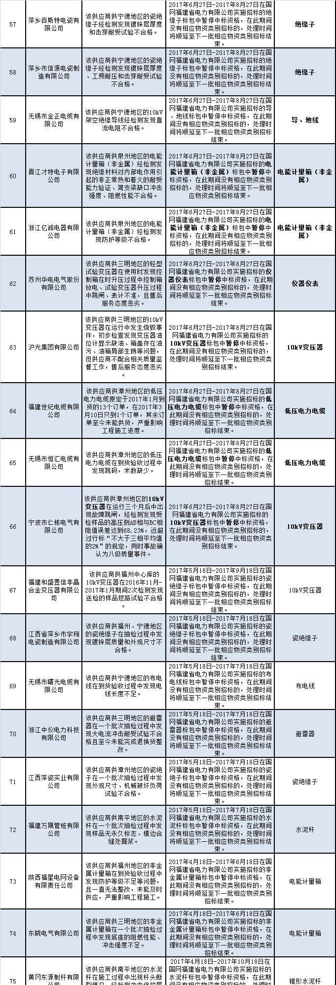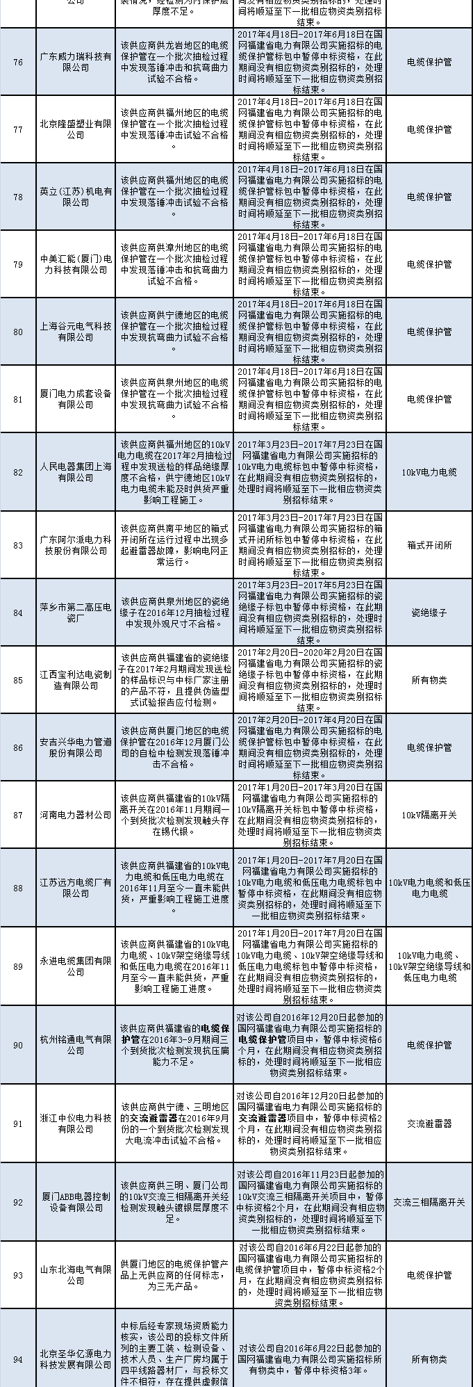 國網(wǎng)福建公司公布的未解除限制供應商名單