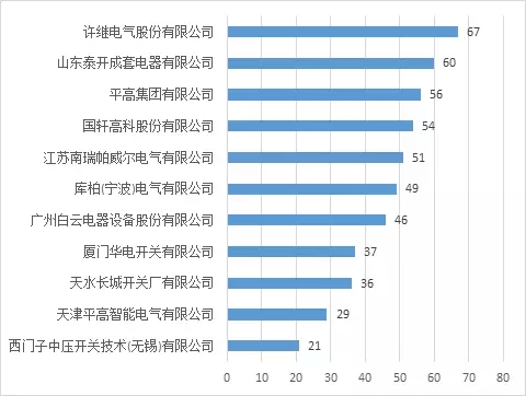 本次35(20)kV 開關柜招標共有11 家企業(yè)中標。許繼電氣股份有限公司中標67 臺,排名第一,份額13.24%。山東泰開成套電器有限公司中標60 臺,排名第二,份額11.86%。平高集團有限公司中標56 臺,排名第三,份額為11.07%。