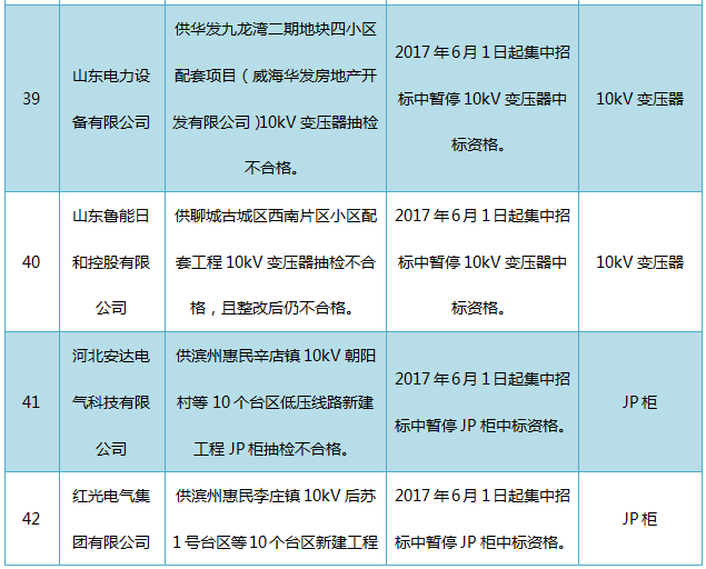 國網(wǎng)山東關(guān)于2017年第七批供應(yīng)商不良行為處理情況的公示(2017年10月)