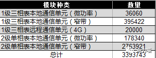 本次招標需求的模塊總數(shù)量為3,393,743只,技術(shù)方案分別是載波、微功率無線和4G。