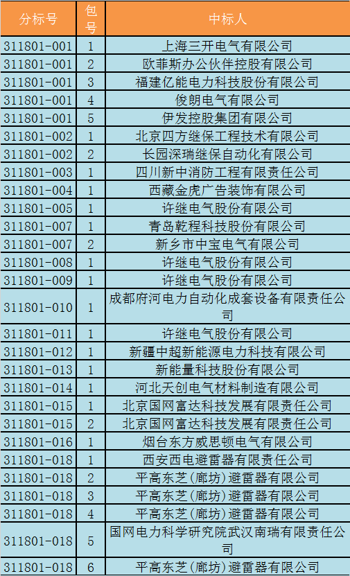 國網西藏電力有限公司2018年第一批物資類招標采購中標結果公告(招標編號:311801)