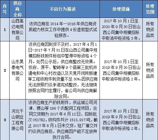 國網(wǎng)(山西)供應(yīng)商不良行為處理情況的通報(bào)(2017.9)