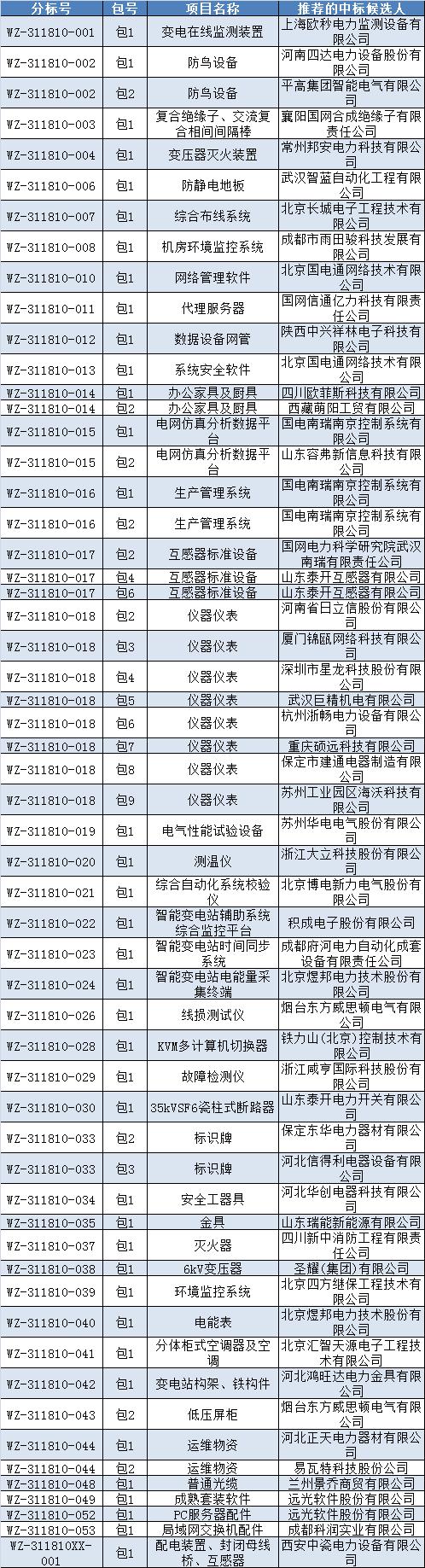 國網(wǎng)(西藏)2017年第五批物資類招標采購中標結(jié)果