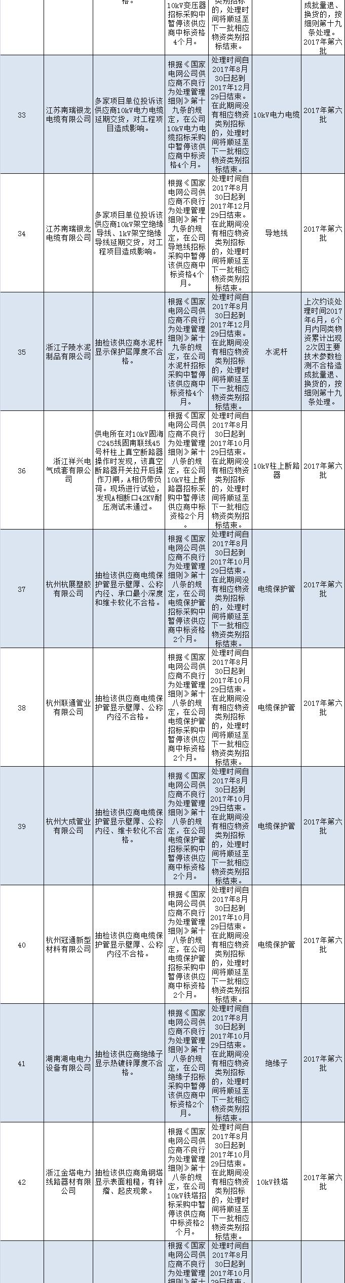 浙江省電力公司2017年第七批供應商不良行為處理結(jié)果公告