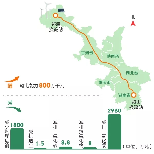 于是,電網(wǎng)公司想出了乾坤大挪移的辦法遠距離輸送“風光”電。會有怎樣的效果呢?2017年6月27日,新能源外送大動脈祁韶直流投運,根據(jù)規(guī)劃每年將有至少168億度的新能源電量將送到湖南,而168億度電,就相當于2016年前10個月甘肅風、光發(fā)電量之和。