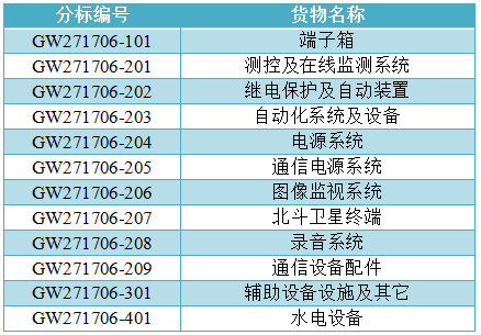 分標編號及貨物名稱見下表,貨物需求一覽表單獨成冊。