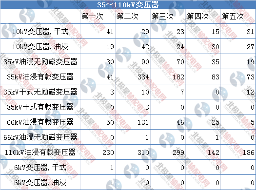 國家電網(wǎng)公司輸變電項目變電設備招標1-5批次35KV-110KV變壓器招標情況