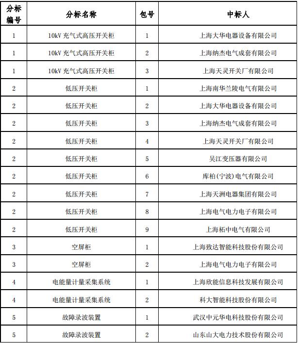 國網(wǎng)上海市電力公司2017年第三批協(xié)議庫存招標(biāo)采購項(xiàng)目中標(biāo)結(jié)果