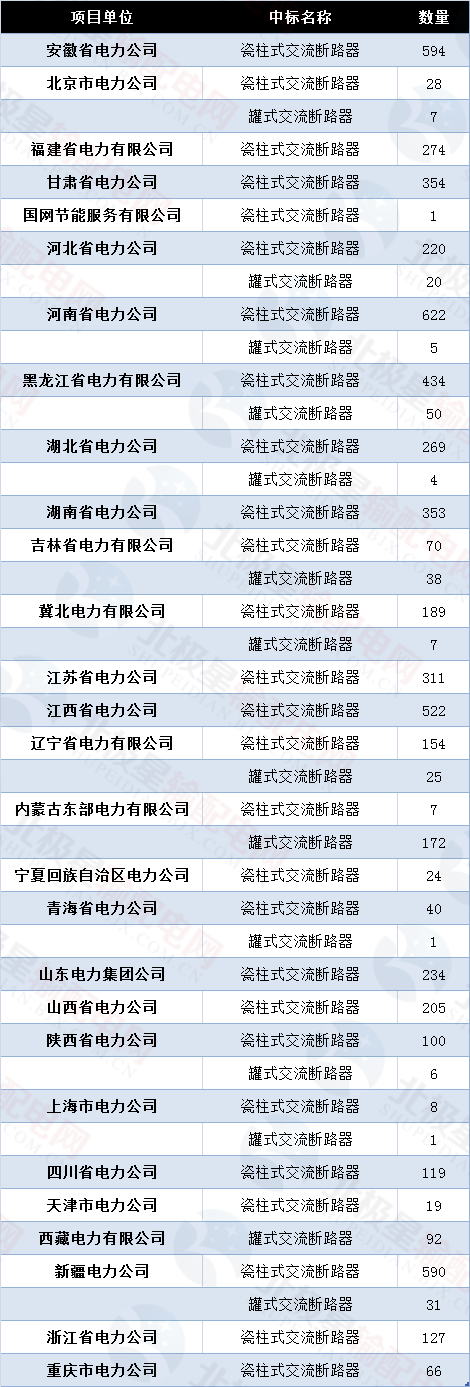 國家電網(wǎng)公司輸變電項(xiàng)目變電設(shè)備招標(biāo)1-6批次各省斷路器招標(biāo)情況