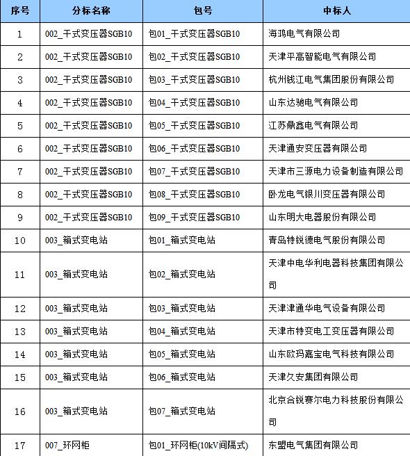 國網(wǎng)天津市電力公司2017年業(yè)擴(kuò)物資協(xié)議庫存新增批次招標(biāo)采購項(xiàng)目中標(biāo)結(jié)果補(bǔ)充公告中標(biāo)公告