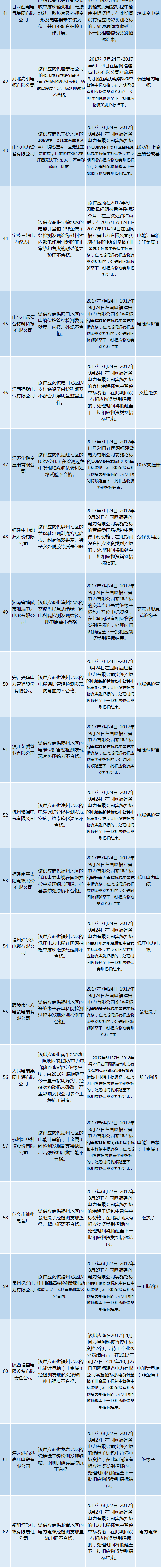 國網(wǎng)福建未解除限制供應商名單(2017.11)