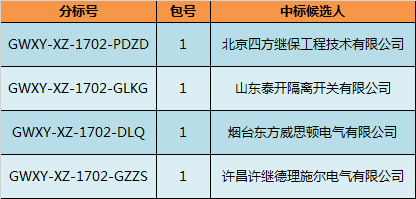國網(wǎng)西藏電力2017年第二次配網(wǎng)設(shè)備協(xié)議庫存貨物招標(biāo)活動中標(biāo)候選人結(jié)果: