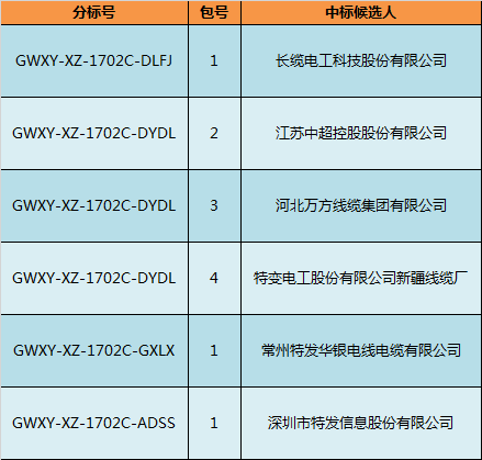 國網(wǎng)西藏2017年第二次配網(wǎng)設(shè)備/線材協(xié)議庫存貨物招標(biāo)中標(biāo)候選人