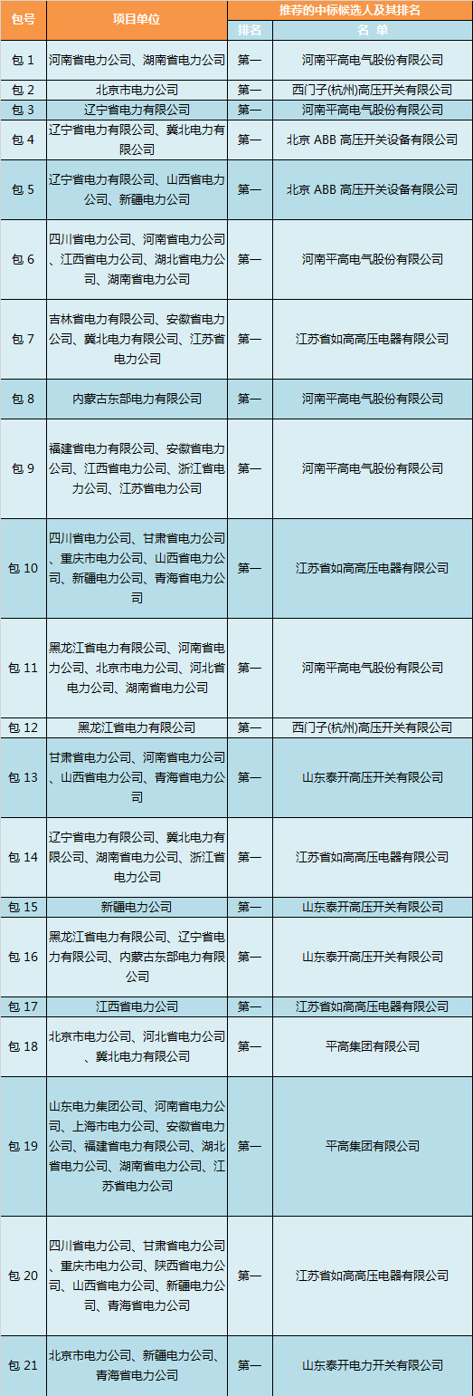 2017年國網(wǎng)第六次變電設(shè)備—斷路器中標(biāo)侯選人名單