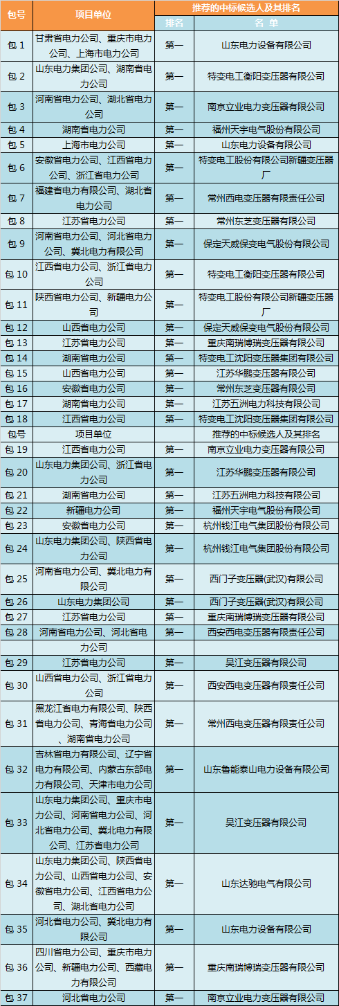 2017年國網(wǎng)第六次變電設(shè)備—35~110kV變壓器中標侯選人名單