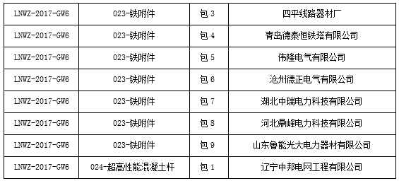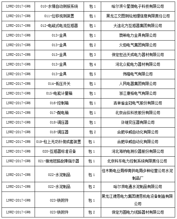 國網(wǎng)黑龍江2017年第六批物資招標采購中標候選人公示