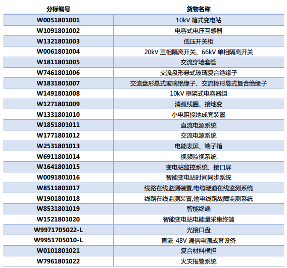 分標(biāo)編號及貨物名稱見下表,貨物需求一覽表單獨成冊。