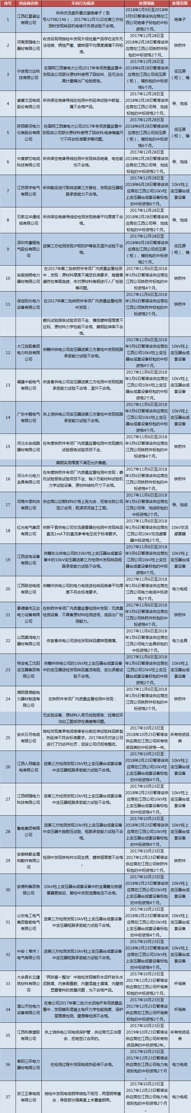 國(guó)網(wǎng)江西關(guān)于供應(yīng)商不良行為處理情況的通報(bào)(2018.1)