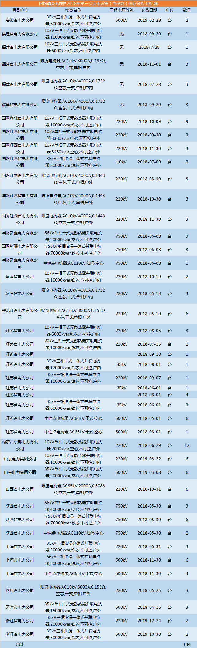 144臺電抗器 國網(wǎng)輸變電項目2018年第一次變電設(shè)備(含電纜)招標(biāo)采購公告