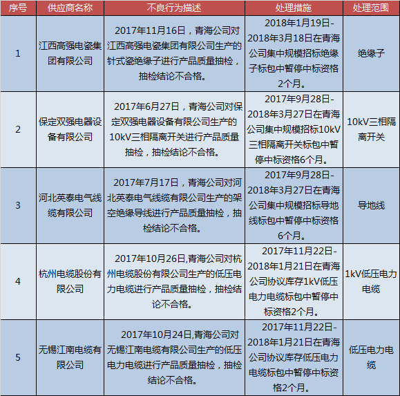 國(guó)網(wǎng)青海關(guān)于供應(yīng)商不良行為處理情況的通報(bào)(2018年1月)