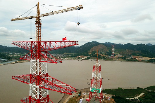 國家電網(wǎng)公司致力于建設(shè)以特高壓為骨干網(wǎng)架、各級電網(wǎng)協(xié)調(diào)發(fā)展的堅強(qiáng)智能電網(wǎng)。圖為建設(shè)中的500千伏舟山聯(lián)網(wǎng)輸變電工程。張帆 攝
