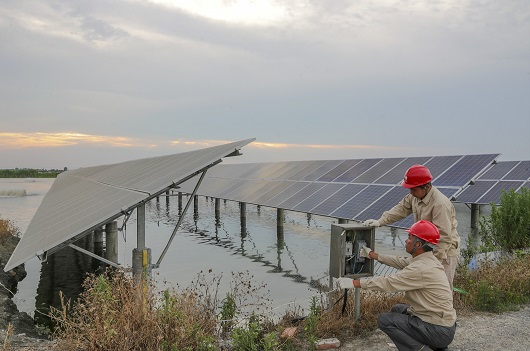 今年上半年,國家電網(wǎng)公司經(jīng)營區(qū)域內(nèi)清潔能源消納形勢良好。圖為位于江蘇興化市的一處漁光互補(bǔ)光伏電站。湯德宏 攝