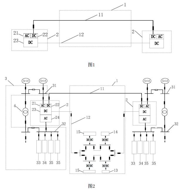 摘要:本發(fā)明實(shí)施例提出了一種交直流混合微電網(wǎng)系統(tǒng),該交直流混合微電網(wǎng)系統(tǒng)包括:直流微電網(wǎng)和至少兩個(gè)柔性變電站,柔性變電站包括:高壓交流系統(tǒng)、高壓直流系統(tǒng)和低壓直流系統(tǒng),高壓交流系統(tǒng)與高壓直流系統(tǒng)之間、高壓直流系統(tǒng)與低壓直流系統(tǒng)之間、高壓交流系統(tǒng)與低壓直流系統(tǒng)之間分別相連,直流微電網(wǎng)包括:高壓直流母線和低壓直流母線,各柔性變電站的高壓直流系統(tǒng)之間通過高壓直流母線相連,各柔性變電站的低壓直流系統(tǒng)之間通過低壓直流母線相連,實(shí)現(xiàn)了負(fù)荷轉(zhuǎn)供和環(huán)網(wǎng)潮流均衡,保證了配電網(wǎng)的持續(xù)供電能力。