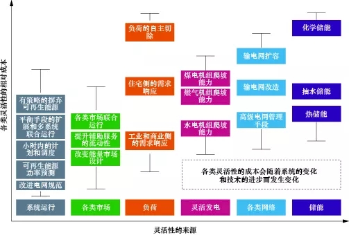 圖3電力系統(tǒng)中靈活性的來源分布與相對成本
