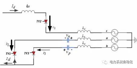 圖4 柔性傳統(tǒng)直流輸電系統(tǒng)的換相過(guò)程:從a相換到b相