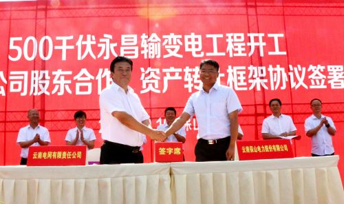 在出席開工儀式的領(lǐng)導(dǎo)和嘉賓見證下,保山電力股份有限公司與云南電網(wǎng)有限責(zé)任公司簽署了《資產(chǎn)轉(zhuǎn)讓框架協(xié)議》和《保山工貿(mào)園區(qū)配售電有限公司股東合作協(xié)議》。